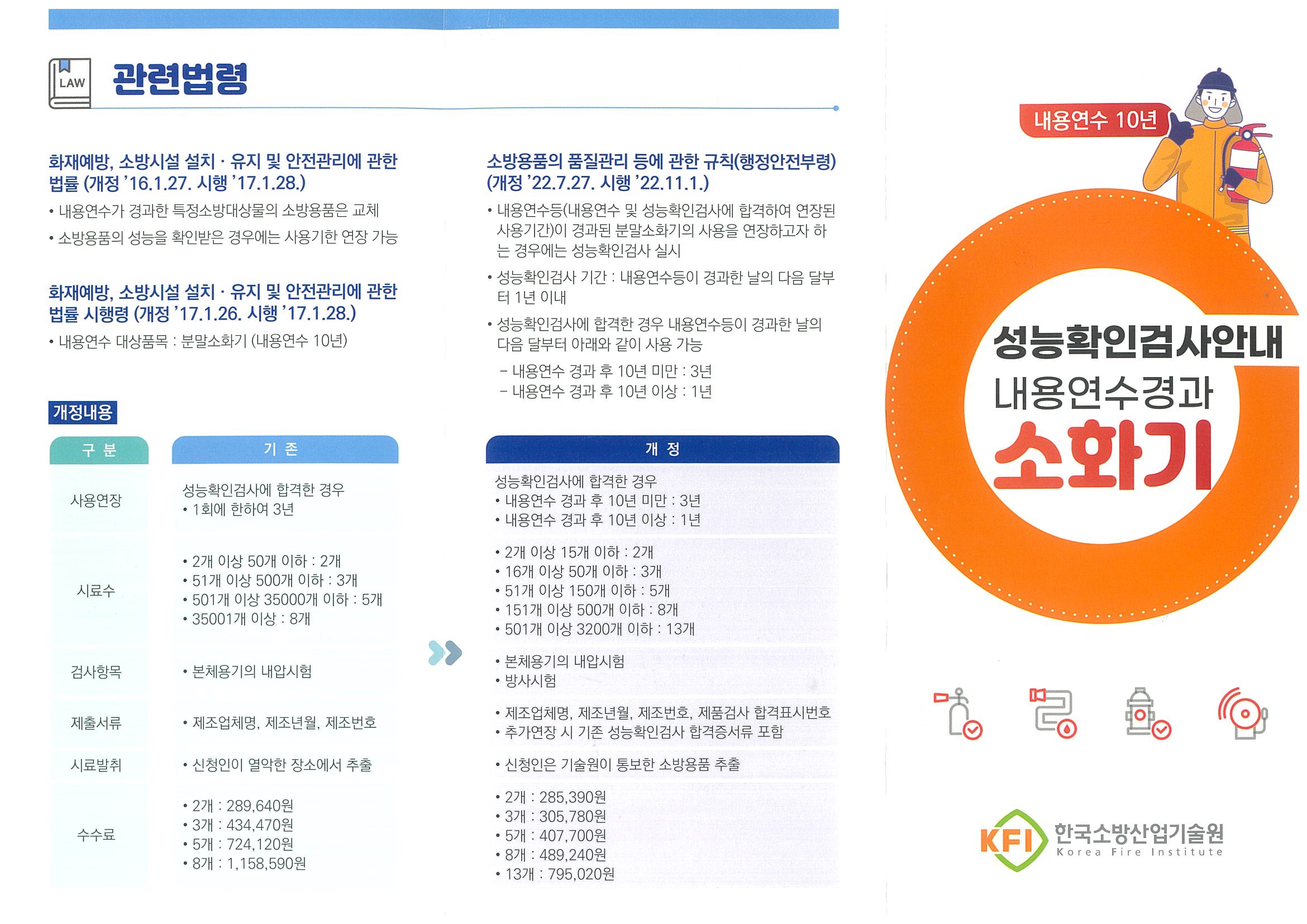 그런데 한국소방산업기술원에서 10년이 넘은 소화기의 성능확인 검사를 받고 합격이 되면 3년을 연장하여 13년 까지 사용 할 수 있습니다.