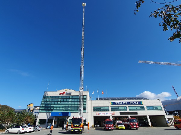 횡성소방서(서장 이석철)는 4일 최신형 고가사다리차 1대를 신규 배치하여