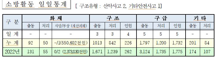 ○ 구조 3건(산악사고 2, 기타안전사고 1)