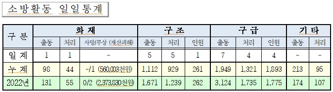 ○ 구급 7건(이송 4, 미이송 3)