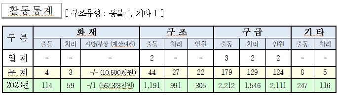 ○ 구조 2건(동물 1, 기타 1)