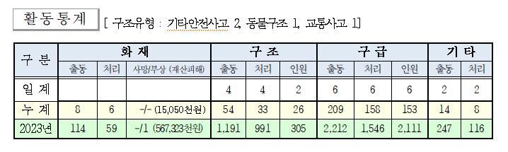 ○ 구급 2건(예방경계1, 민원출동1)