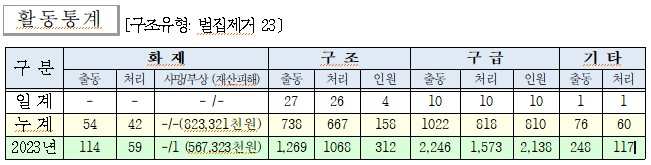 구조 27(수난사고1, 기타안전사고 2, 추락사고 1, 벌집제거 23)