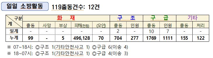 12. 9.(화) 소방활동 상황일보