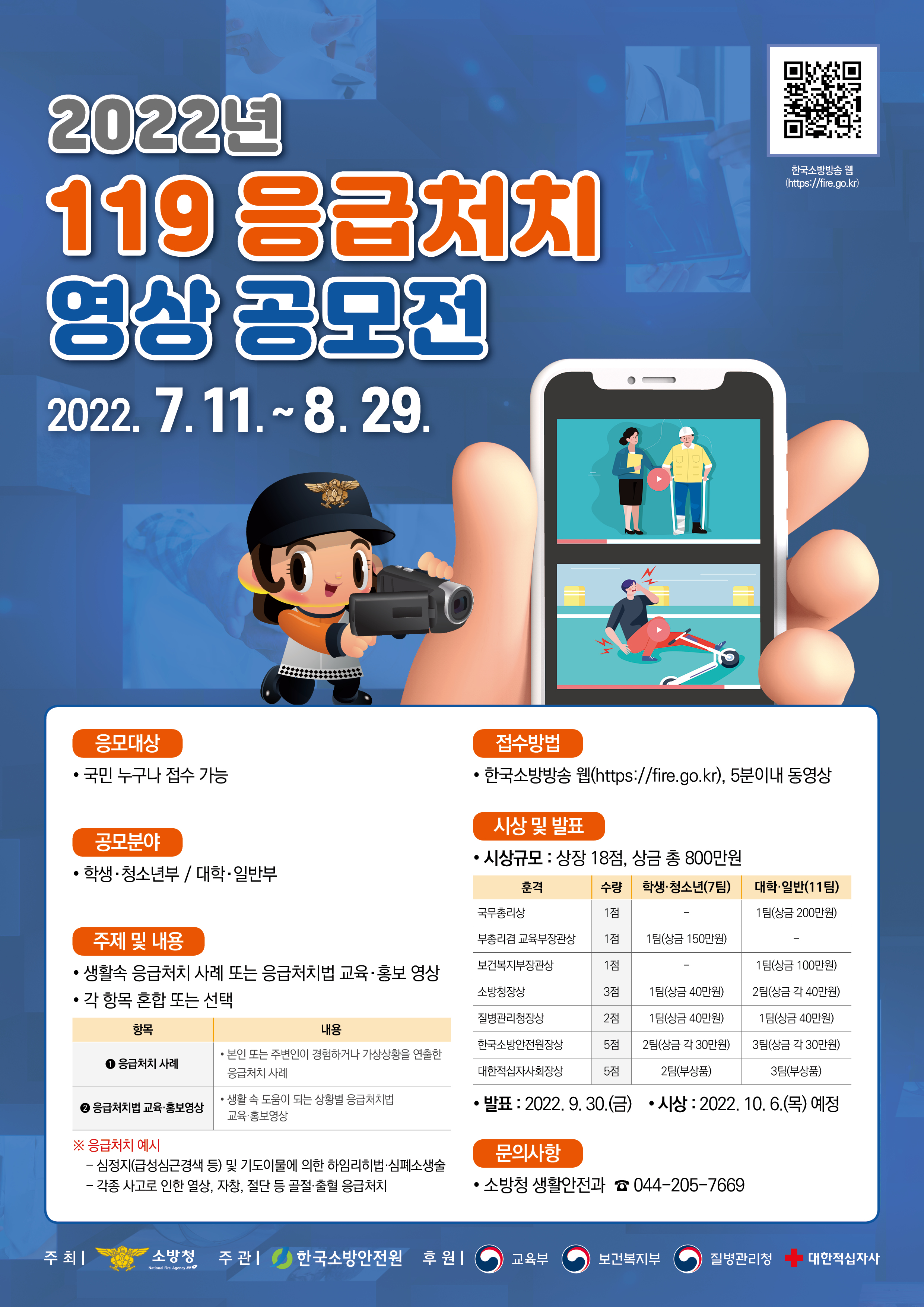 소방청에서 주관하는 2022년 119응급처치 영상 공모전을 안내합니다.