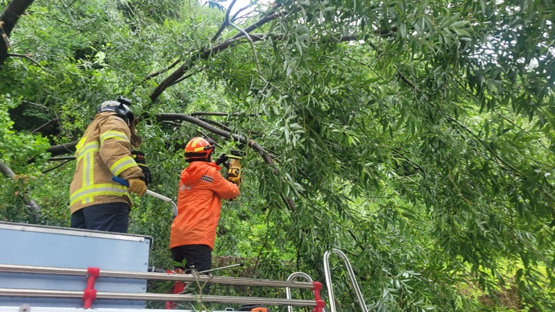 인제소방서에서 나무 제거, 교통통제 등 다양한 안전조치를 실시하였습니다.