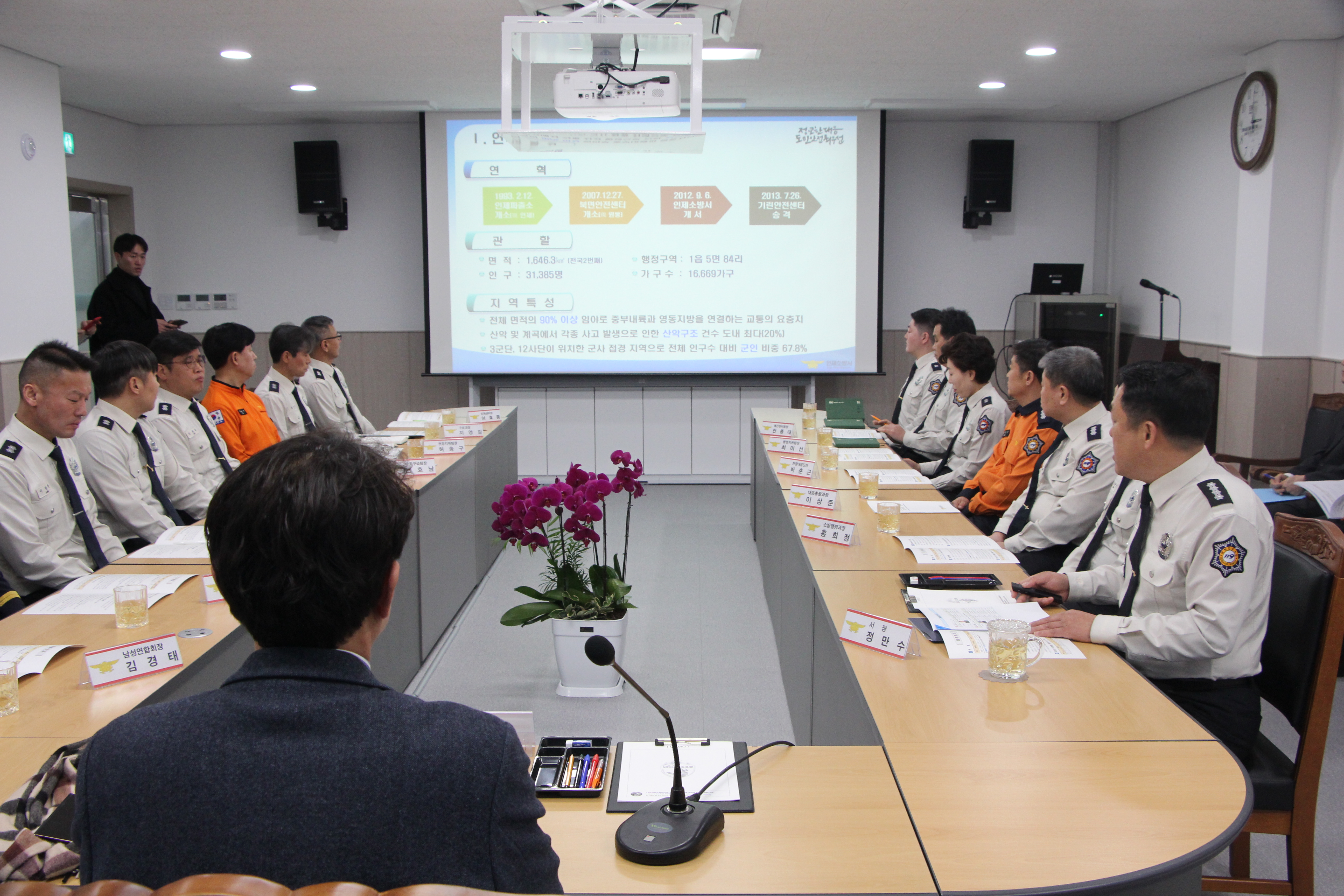 이 날 정만수 서장을 비롯하여 소방공무원과 의용소방대 연합회장과 함께 소통하는 시간을 가졌습니다.