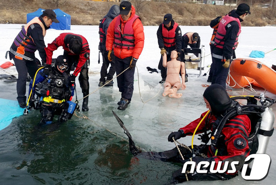 인제소방서 해빙기 인명구조 훈련[뉴스1]