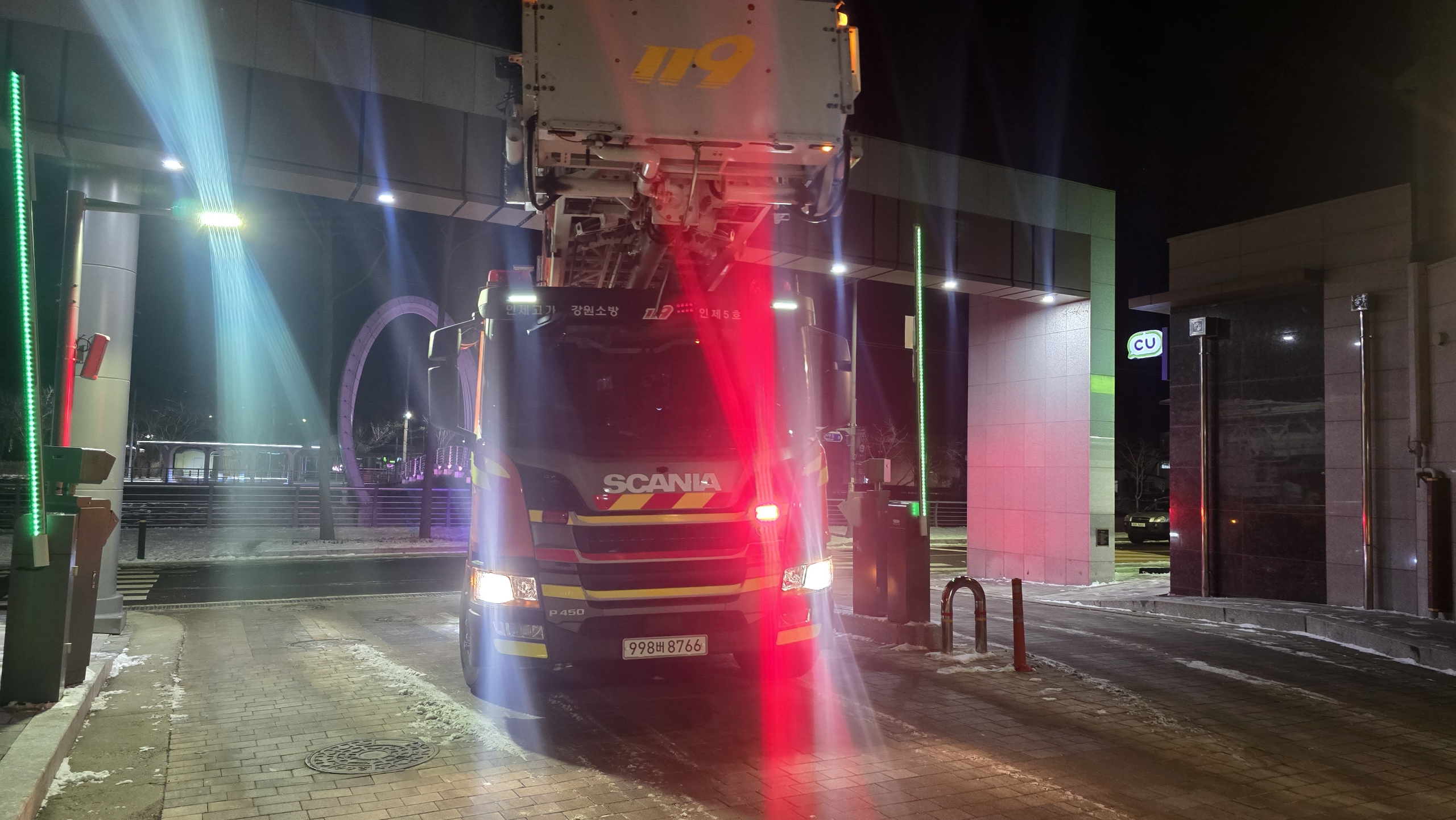 인제소방서, 아파트 대상 소방차 야간 진입로 확보 훈련 실시