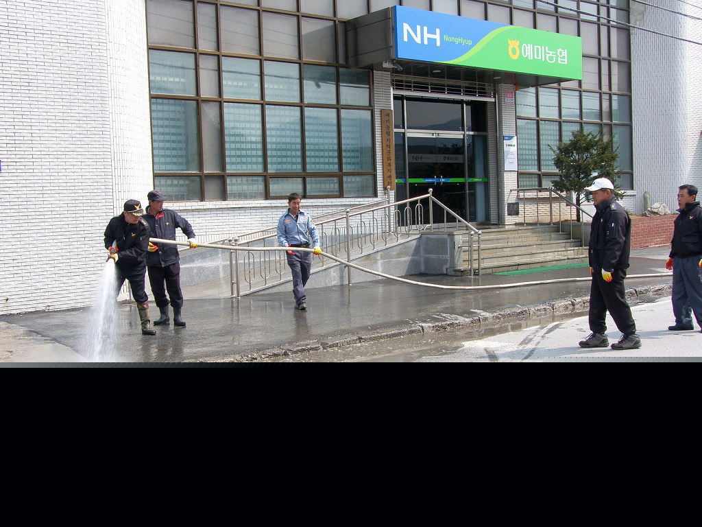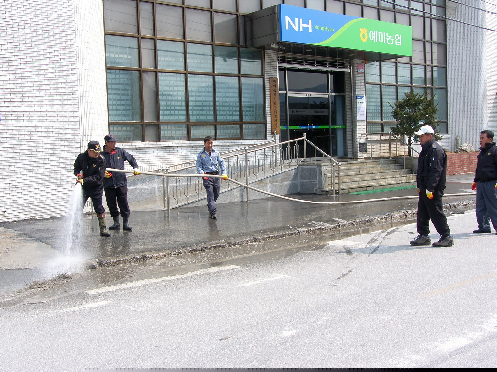 읍사무소와 신동농협구간을 깨끗하게 물청소 및 쓰레기를 치웠다.