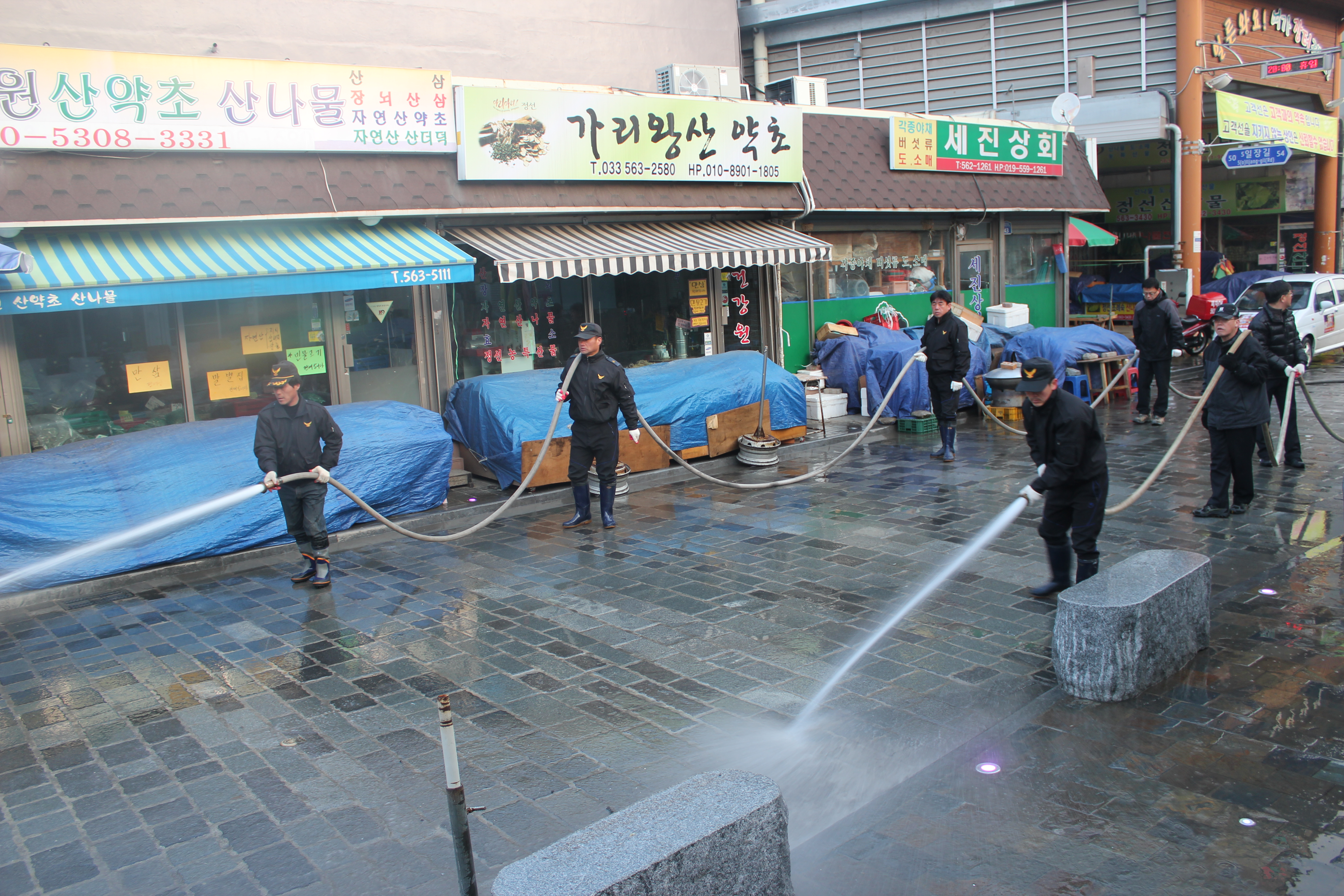 2012년 4월7일 정선 5일장 개장을 앞두고 정선을 찾는 관광객들에게 보다 쾌적한 환경을 제공하고자 정선의용소방대(대장:박진호)대원30여명은 4월5일06시부터 소화전.,소방차 , 자체보유 살수 차량으로 정선5일 장터 및 주변도로를 깨끗이 물청소 하였슴