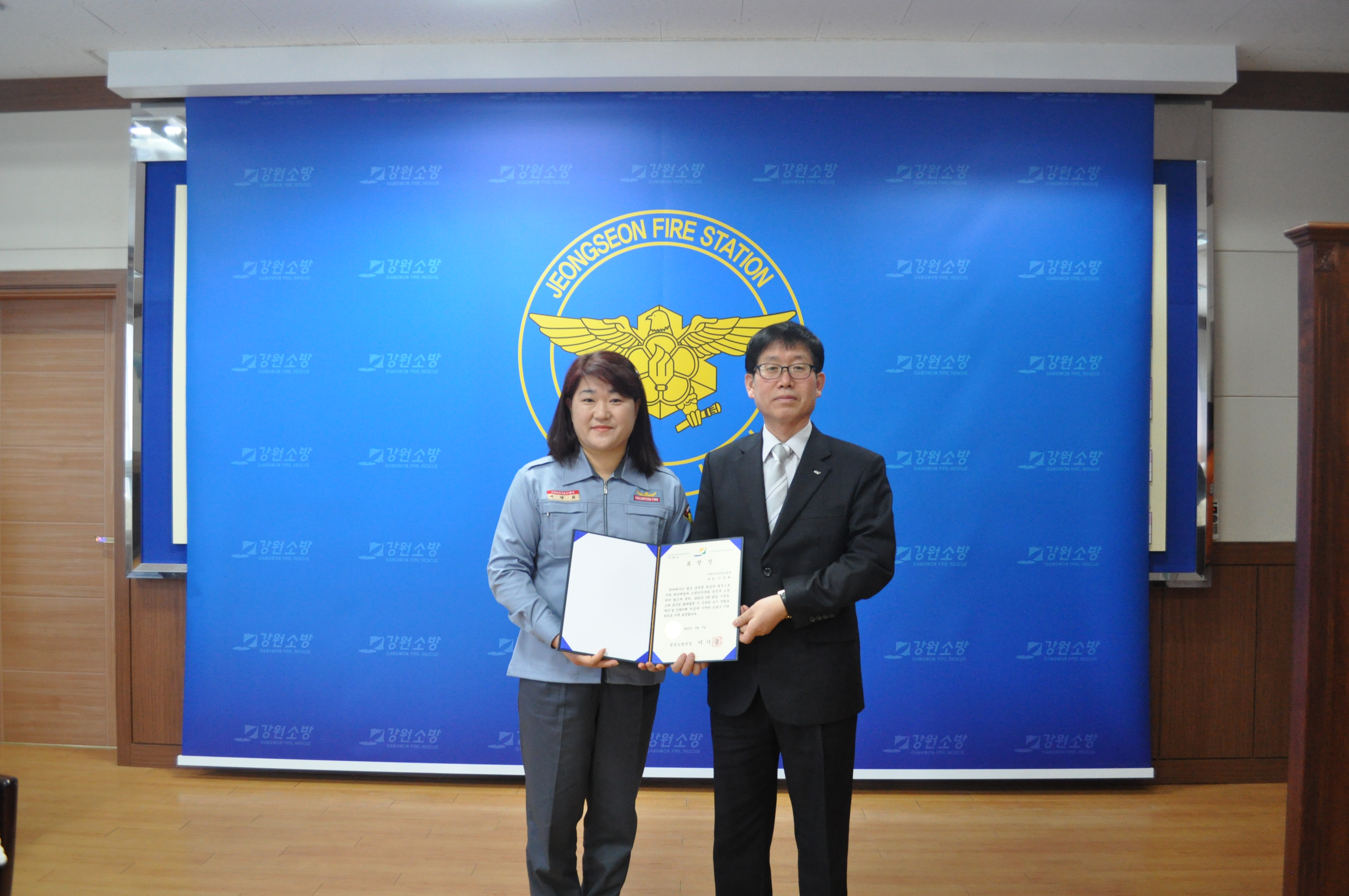 정선소방서(서장 이기중)는 2016. 03 .07 사북여성의용소방대(대장 김지민) 이영희 대원에게 표창장을 전달하였습니다. 이영희 대원은 2016. 02. 20 사북읍 소재 음식점 화재발생 시 신속한 초기 진화로 재산 및 인명피해 저감에 기여하였습니다.