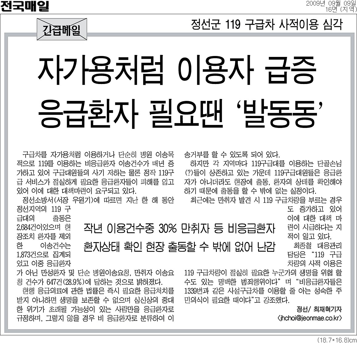 9월 9일자 언론보도 입니다