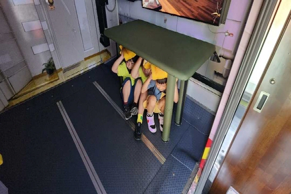 ➤이동안전체험차 내부는 지진 체험 시설과 가상 화재 체험ㆍ화재 대피 체험 시설 등으로 구성됐다. 외부에서는 완강기 체험과 외부 영상 장치를 활용한 영상 교육이 가능하다.
