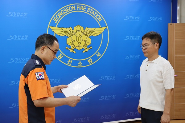 ➤ 정선소방서(서장 유영민)는 지난 2일 화재를 초기에 진압한 민간인에 대해 소방서창 표창을 수여했다.