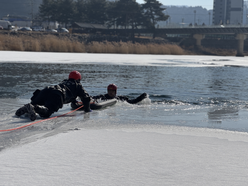 ➤ 이번 훈련은 해빙기가 다가오면서 발생할 수 있는 수난사고를 대비하기 위해 실시됐으며, 훈련에 참여한 20여명의 소방대원은 상황에 따른 맞춤형 구조 방법과 각종 수난 구조장비를 활용한 구조 기법을 실습했다.