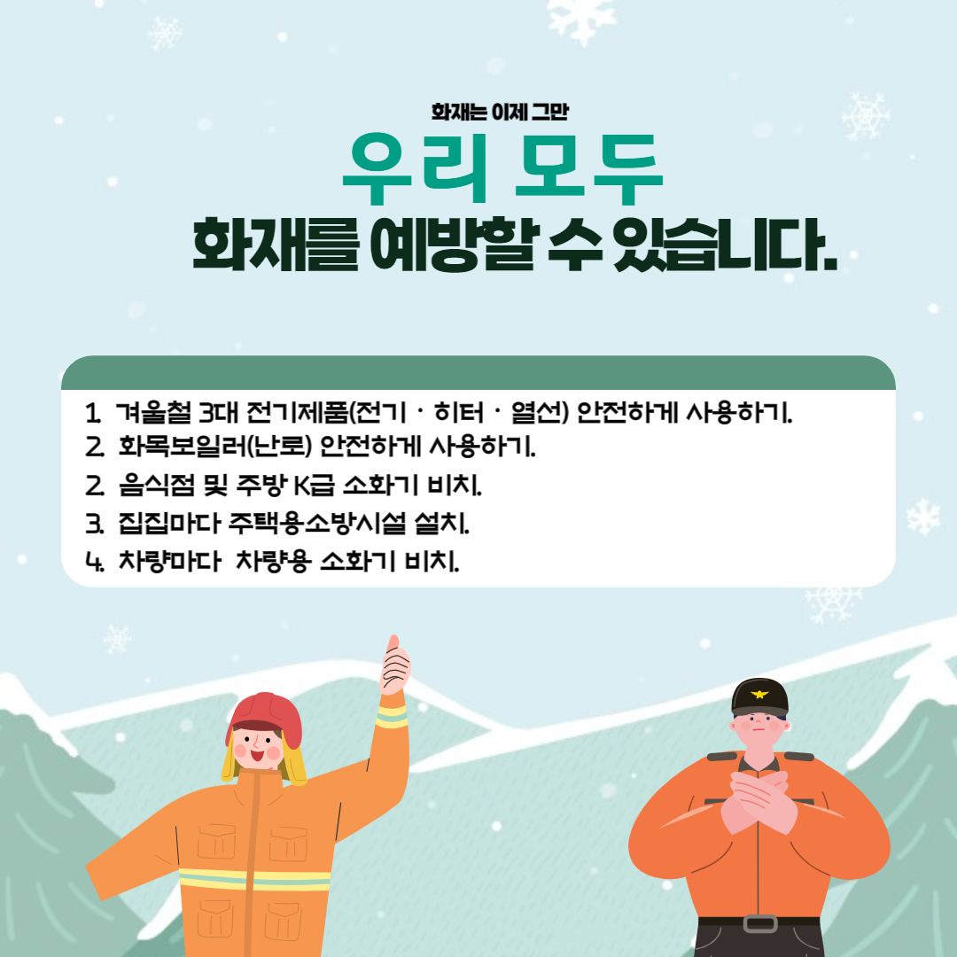 | 1231 | 겨울철 화재예방법 | 지역소방서 | 2022-02-22 | 616 | |
