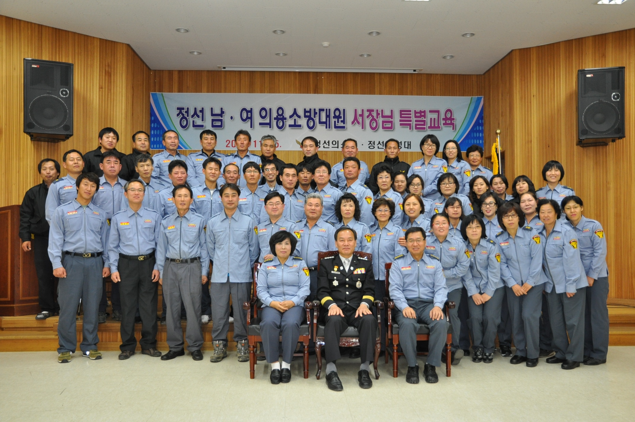 정선소방서장(서장:박창진)은 2011.11.15일 14:00시 화암 남.여의용소방대원과 2011.11.15 20:00 정선남.여 의용소방대원에 대한 특별 교육을 실시하여 겨울철 소방안전대책 및 당부사항을 전달하고, 특히 겨울철 화재출동 및 대기근무에 철저를 기해줄것을 당부 했다