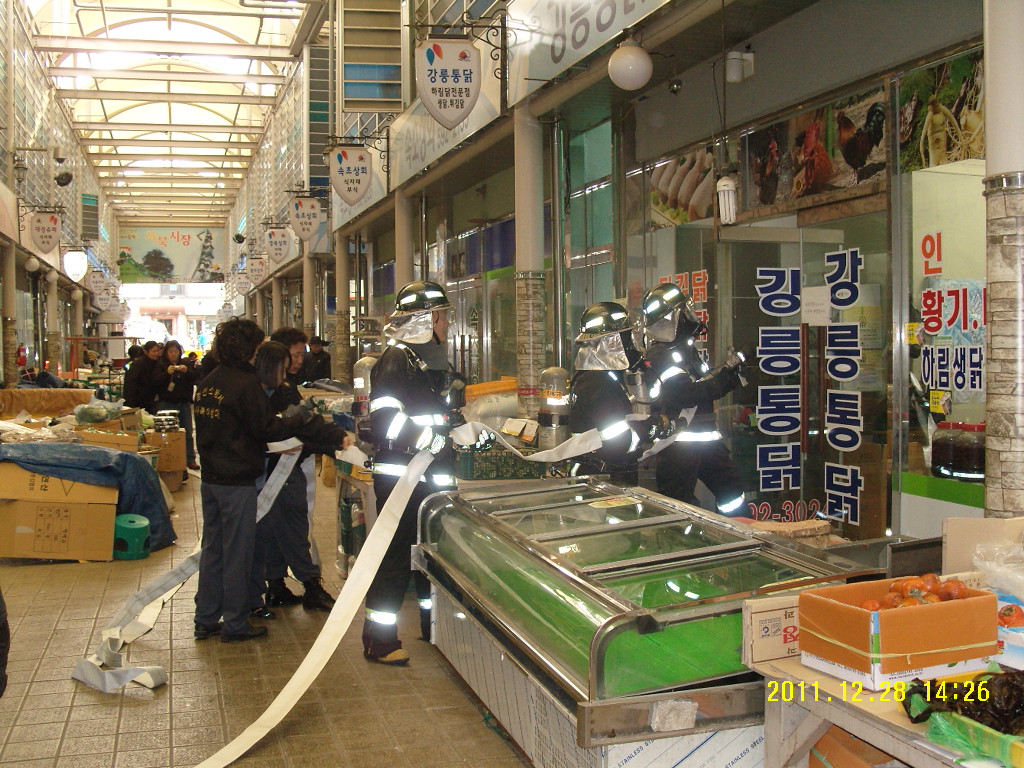 정선소방서(서장 박창진)는 2011년 12월 28일 사북시장 합동훈련을 실시하였습니다.