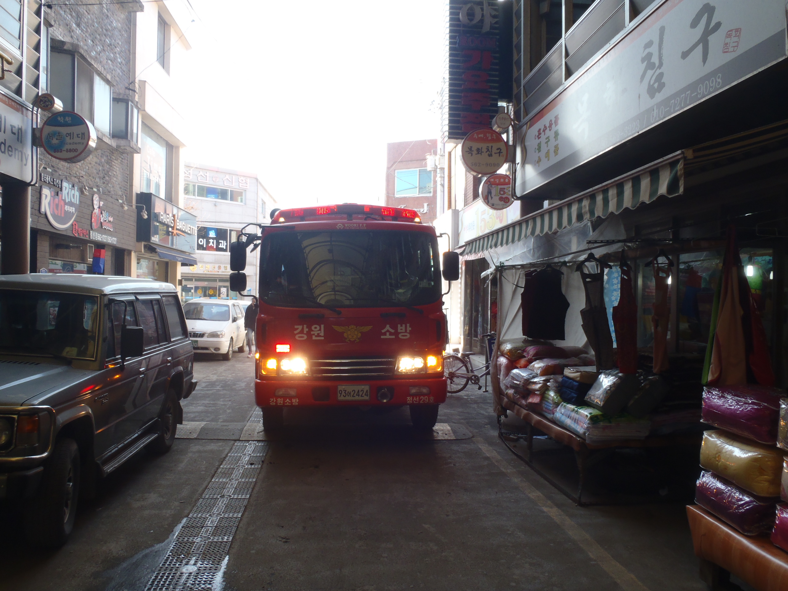 정선소방서(서장 박창진)정선119안전센터에서는 금일 정선시장 현장출동 적응훈련을 실시하였습니다. 시장 곳곳 소화시설 확인하여 신속한 화재에 대응할 수 있도록 최선을 다하여 훈련에 임하였습니다.