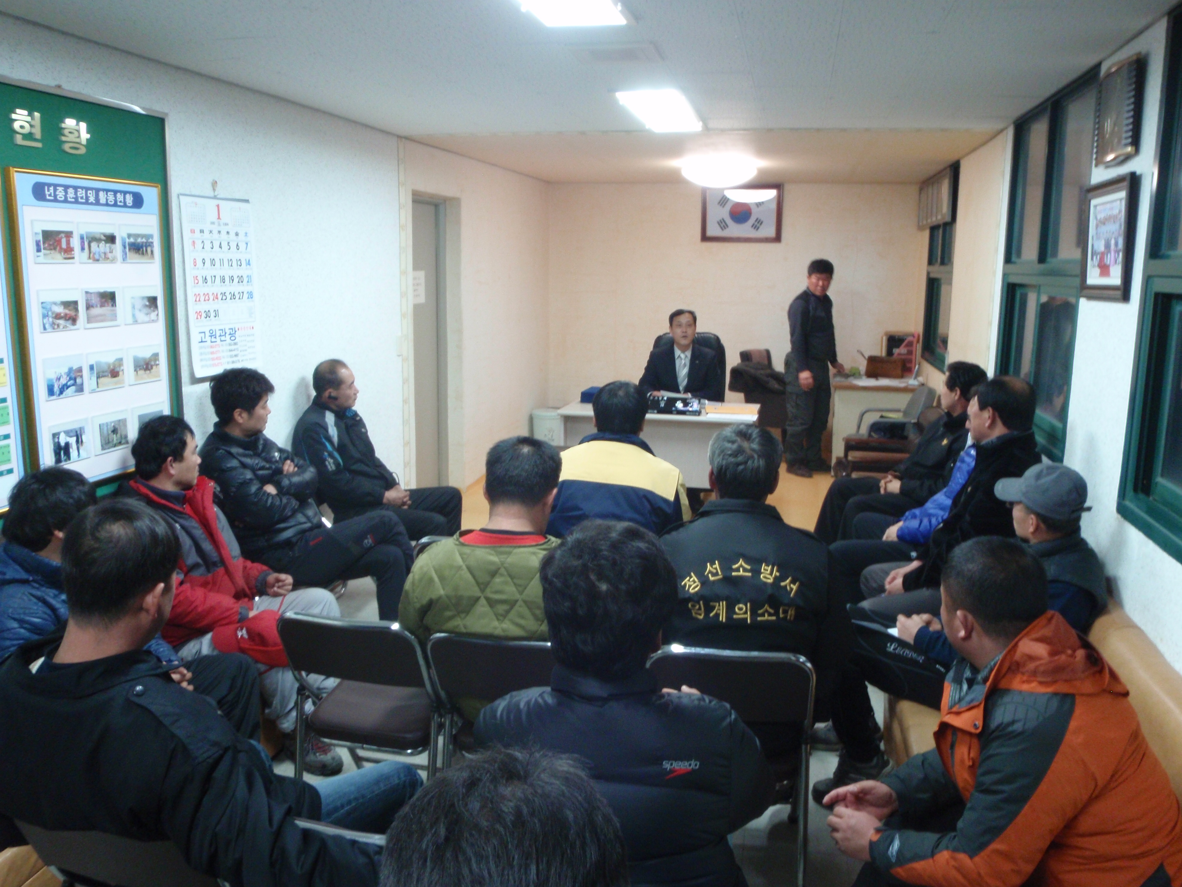 (정선소방서장 : 박창진) 임계119안전센터에서는 센터장님과 남성의용소방대장님이 참석한 가운데 2012년 임진년을 맞이하여 첫번째 의용소방대 정기교육을 실시하였습니다.. 정기교육을 맞이하여 신입의용소방대원분들도 함께 소개했습니다. 의용소방대 신입대원님에 신규가입을 축하드립니다.