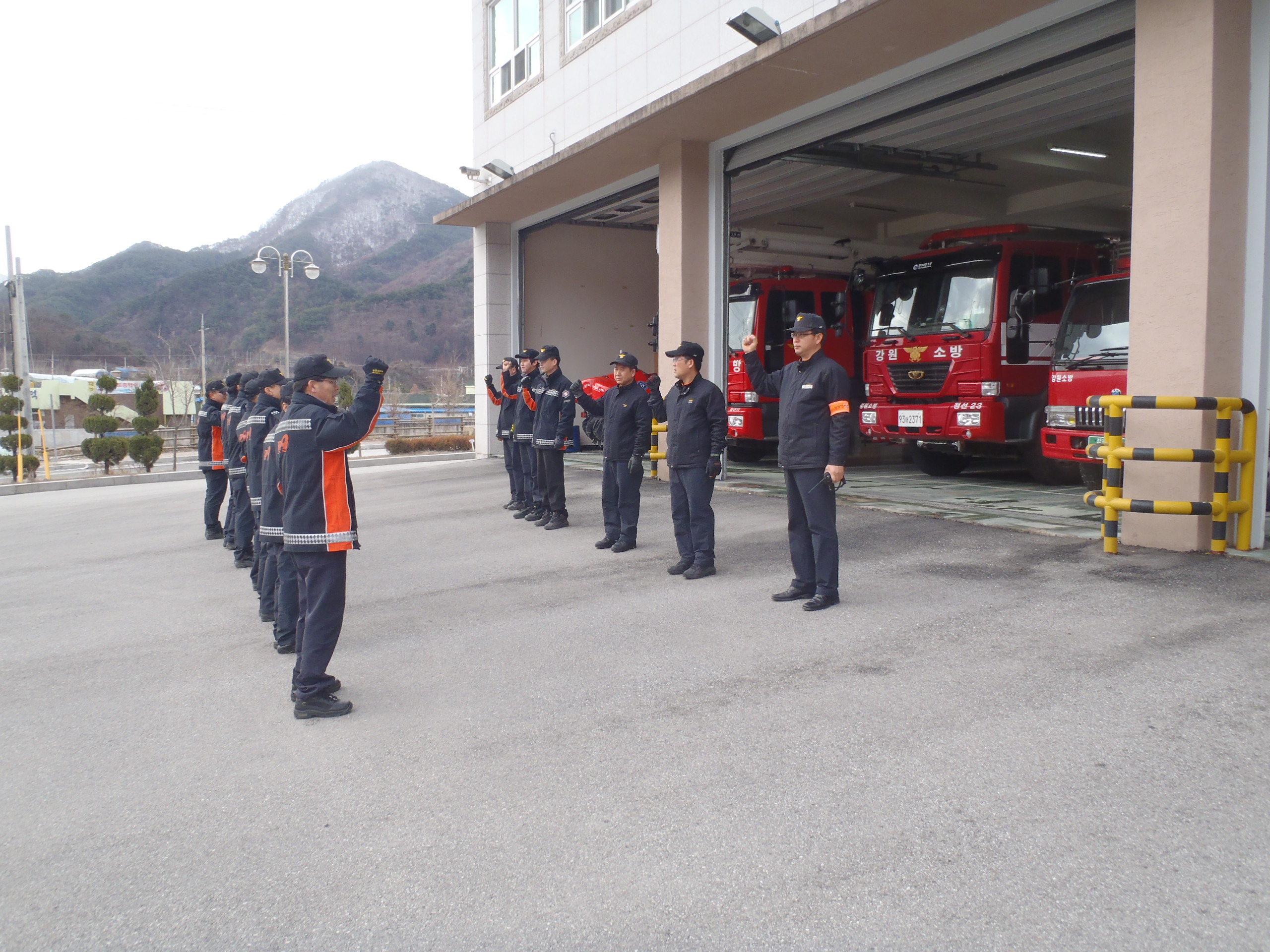 정선소방서(서장 박창진) 정선119안전센터에서는 아침교대시 안전구호을 외치며 활기찬 하루를 시작했습니다