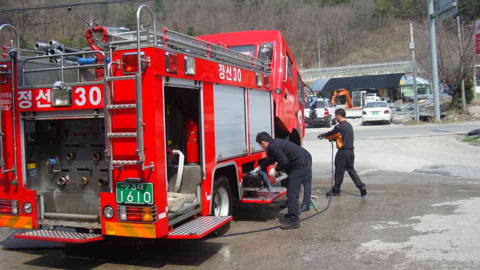 정선소방서(서장 박창진)신동119안전센터에서는 금일 펌프차량점검. 정비 세차및 소방호스세척을 실시하였습니당~!! 항상 깨끗한 차량및 적재물 상태를 유지하여야 겠습니다.