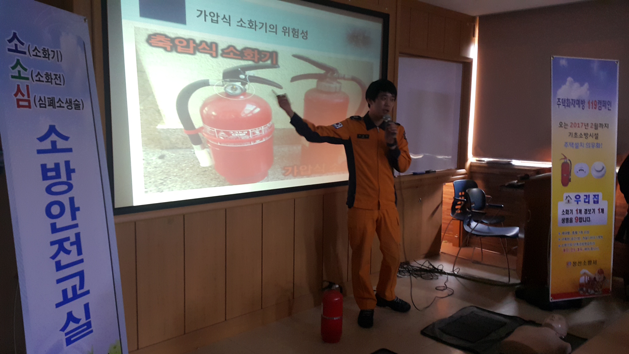 이날 교육에는 화재시 대피요령, 소화기 사용법 및 심폐소생술 등에 관한 교육이 실시되었습니다.
