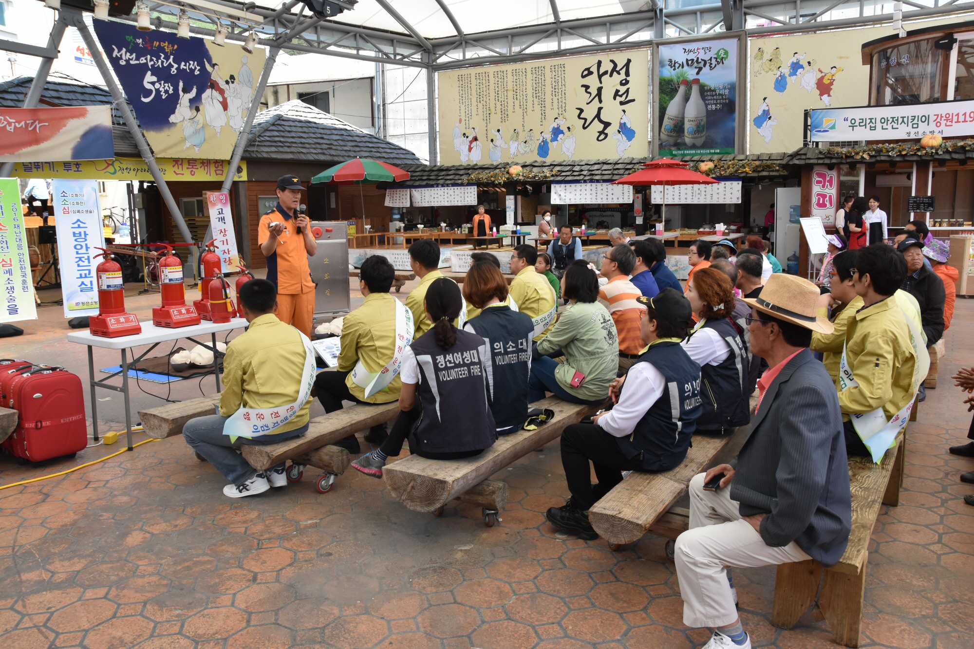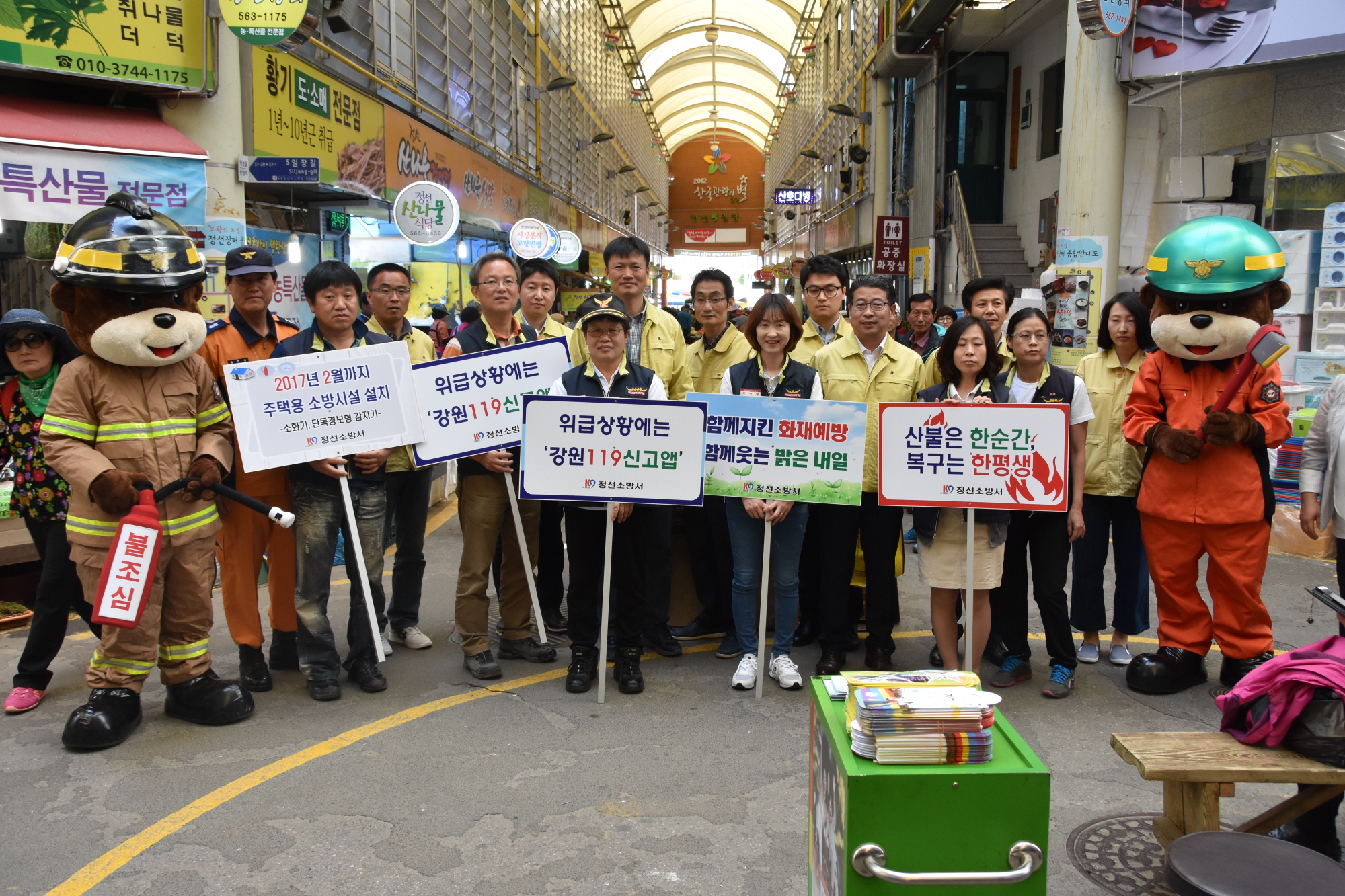 정선소방서(서장 이기중)는 2016. 05. 17 정선5일장 공설무대에서 장날을 맞아 군청과 의용소방대 합동으로 소소심 교육 및 캠페인을 실시하였습니다.