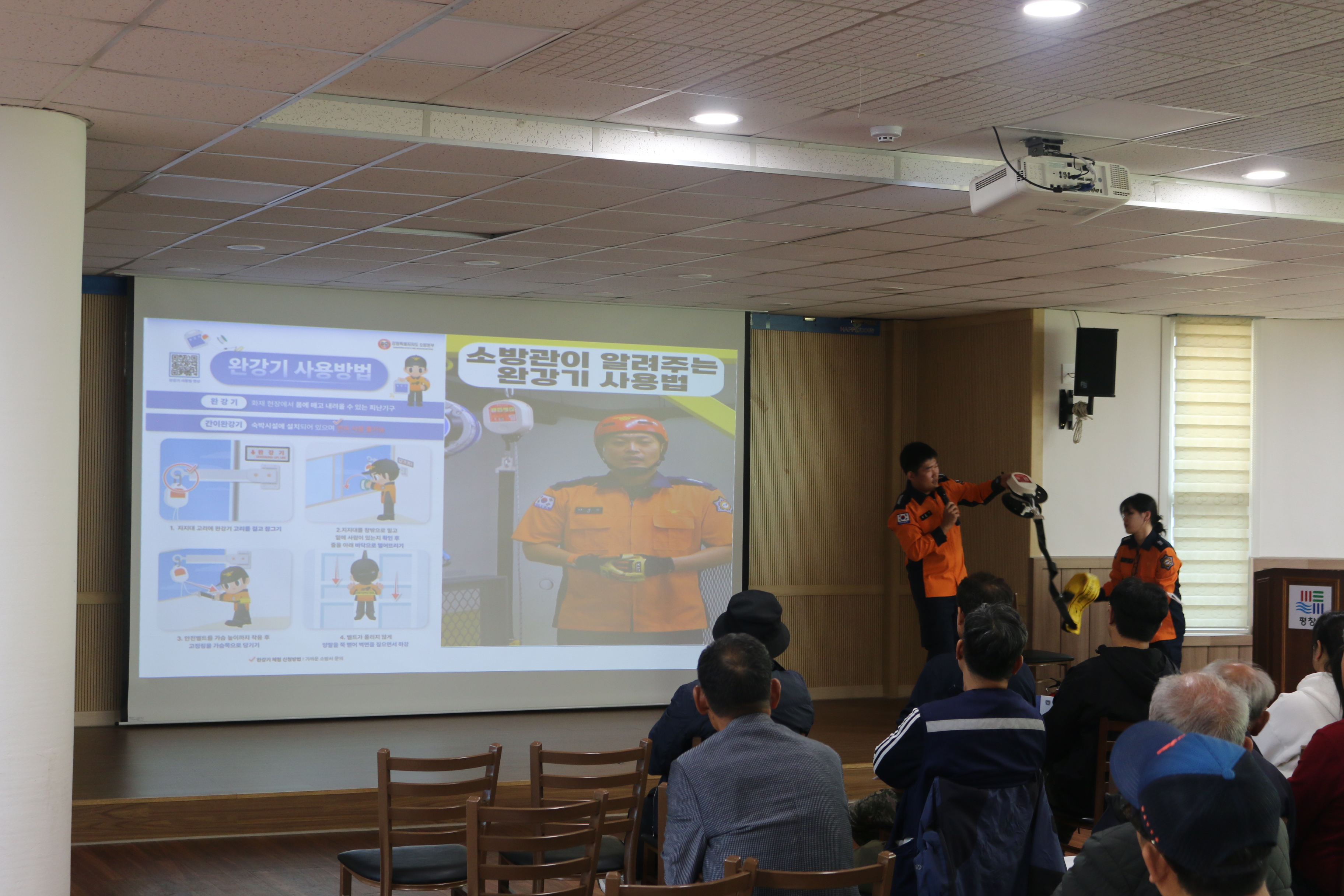 교육 참석 전 배부한 ‘자율점검 체크리스트’를 통해 숙박시설 관계인들이 자체적으로 완강기 및 기타 소방시설(소화기, 유도등, 수신기, 감지기 등)을 점검할 수 있도록 하였다.