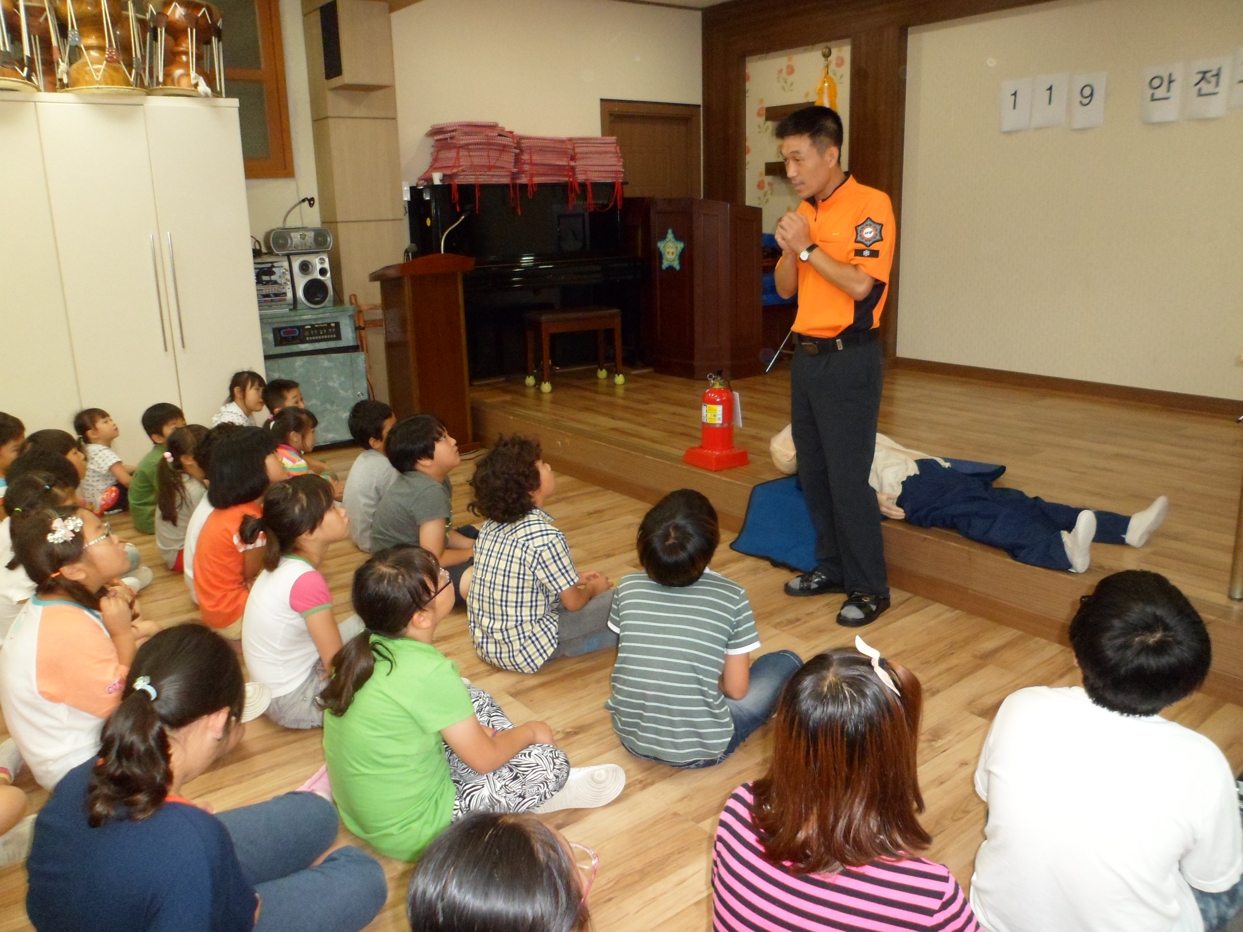 4. 내용 : 유친원생 및 초등학생 41명을 대상으로 여름철 물놀이 시 주의해야할 사항, 소화기 사용법, 장난전화 금지, 불장난 금지 및 각종 신고요령 등 교육 실시함.