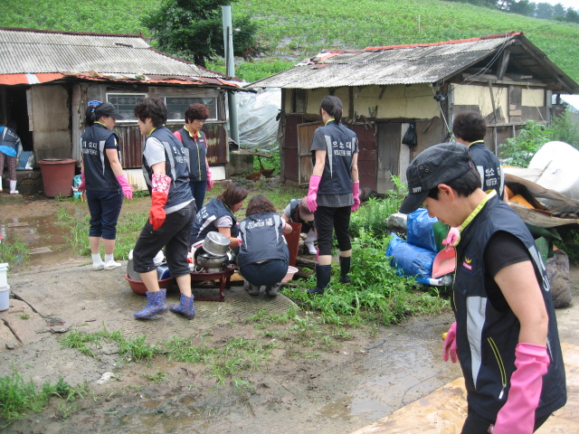 용평 여성의용소방대에서 금일(2013.07.25) 오전 10시부터 용평면 백옥포리에 위치한 독거노인 및 주거 침수 지역 복구작업 봉사활동을 시작하였습니다. 용평여성의용소방대원 15명이 참여한 봉사 활동은 복구작업에 어려움이 많아 고생하였지만 봉사하는 마음으로 최선을 다하였습니다.