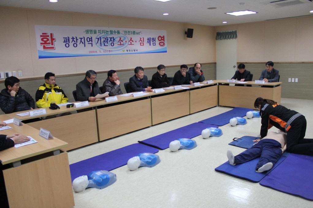 □ 평창소방서(서장 김남숙)에서는 15일 오후 평창소방서에서 평창지역 기관장 모임 “평심회”회원 14명을 대상으로 안전문화 정착을 위한 소․소․심 체험교육을 전개하였다.