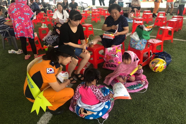 30일 오후 2시 2019 평창더위사냥축제가 열리고 있는 땀띠공원 일원에서 소방안전캠페인을 실시하였습니다.