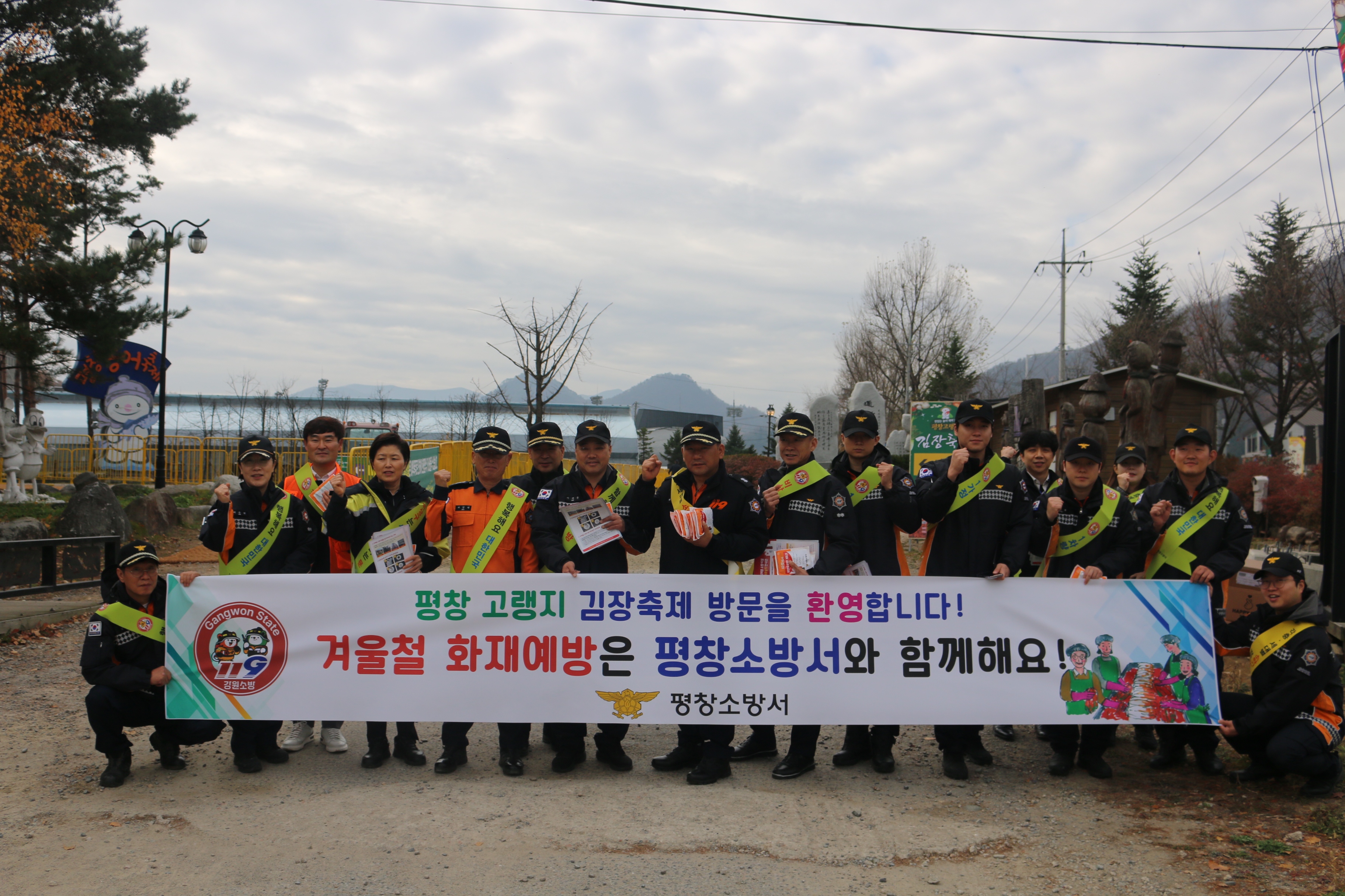 평창소방서(서장 서강원)는 15일 오전 10시 진부면 2024년 평창 고랭지 김장 축제장에서 소방안전문화 확산 및 안전한 겨울나기 캠페인(겨울철 화재예방은 평창소방서와 함께해요!)을 실시하였습니다.