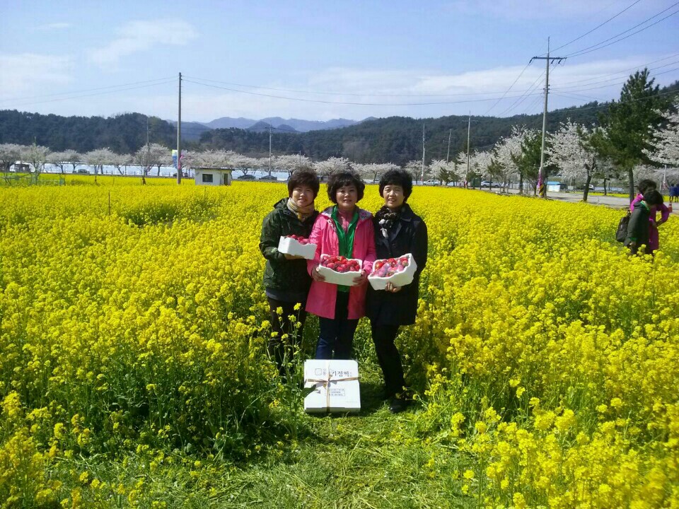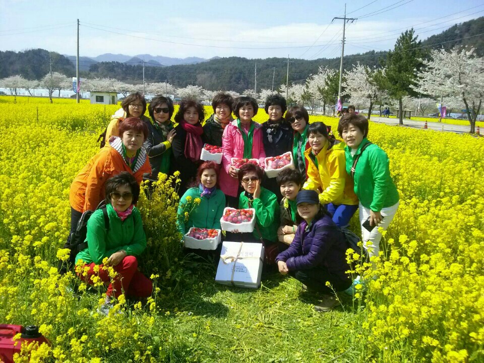 2015. 4. 15 삼척유체꽃 축제장에 홍천여성대 대장(이보경)님과,대원분들 방문하여 삼척여성대 연합회장(최금순)님께서 홍천여성대장님께 딸기5박스, 기정떡3판을 감사의 뜻으로 전달하셨습니다.