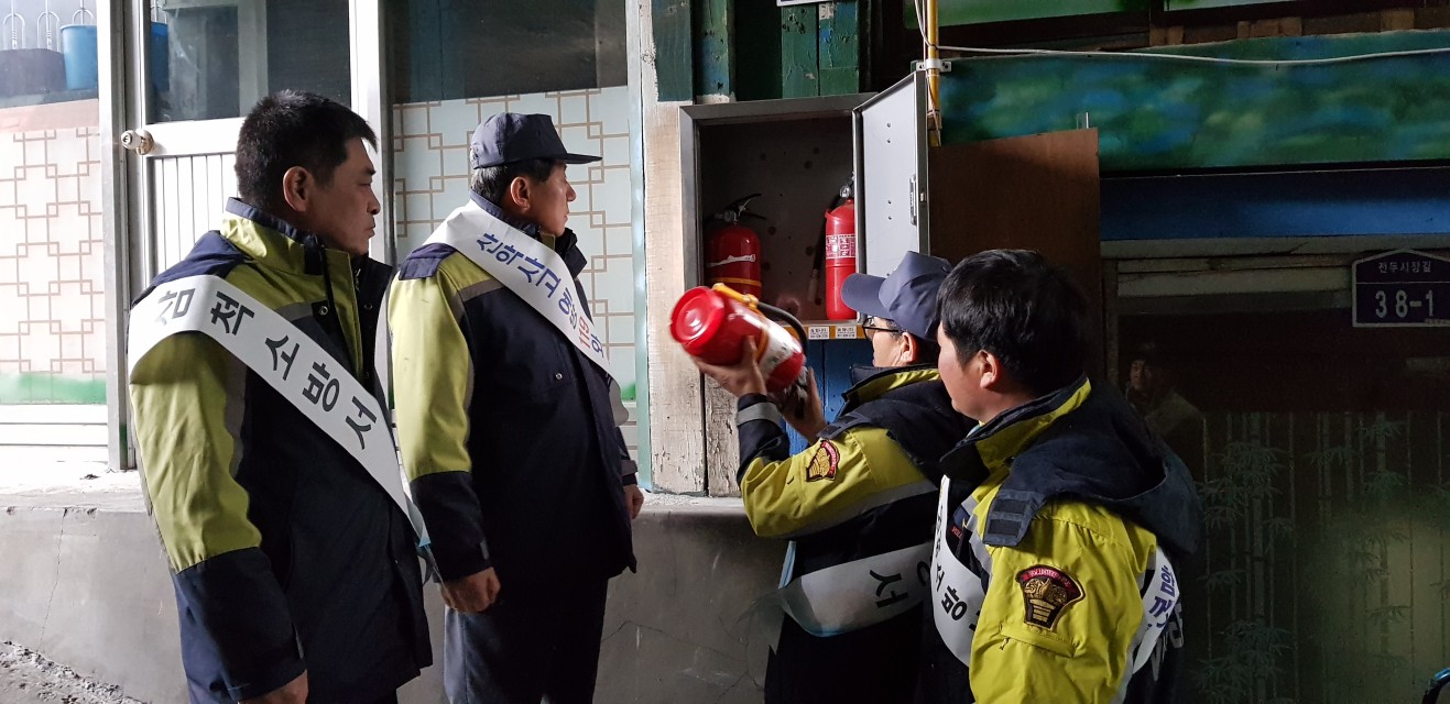 2월19일 도계전두시장내 상인 및 행인들께 화재예방캠페인과 시장내 화재장비 점검을 실시하였습니다.