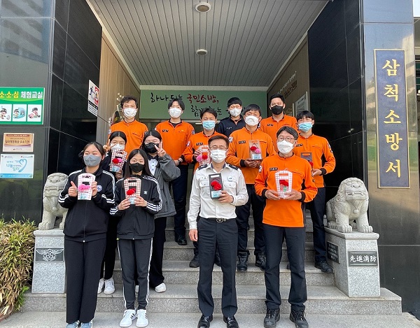 삼척중학교 학생들, 삼척소방서에 카네이션 전달