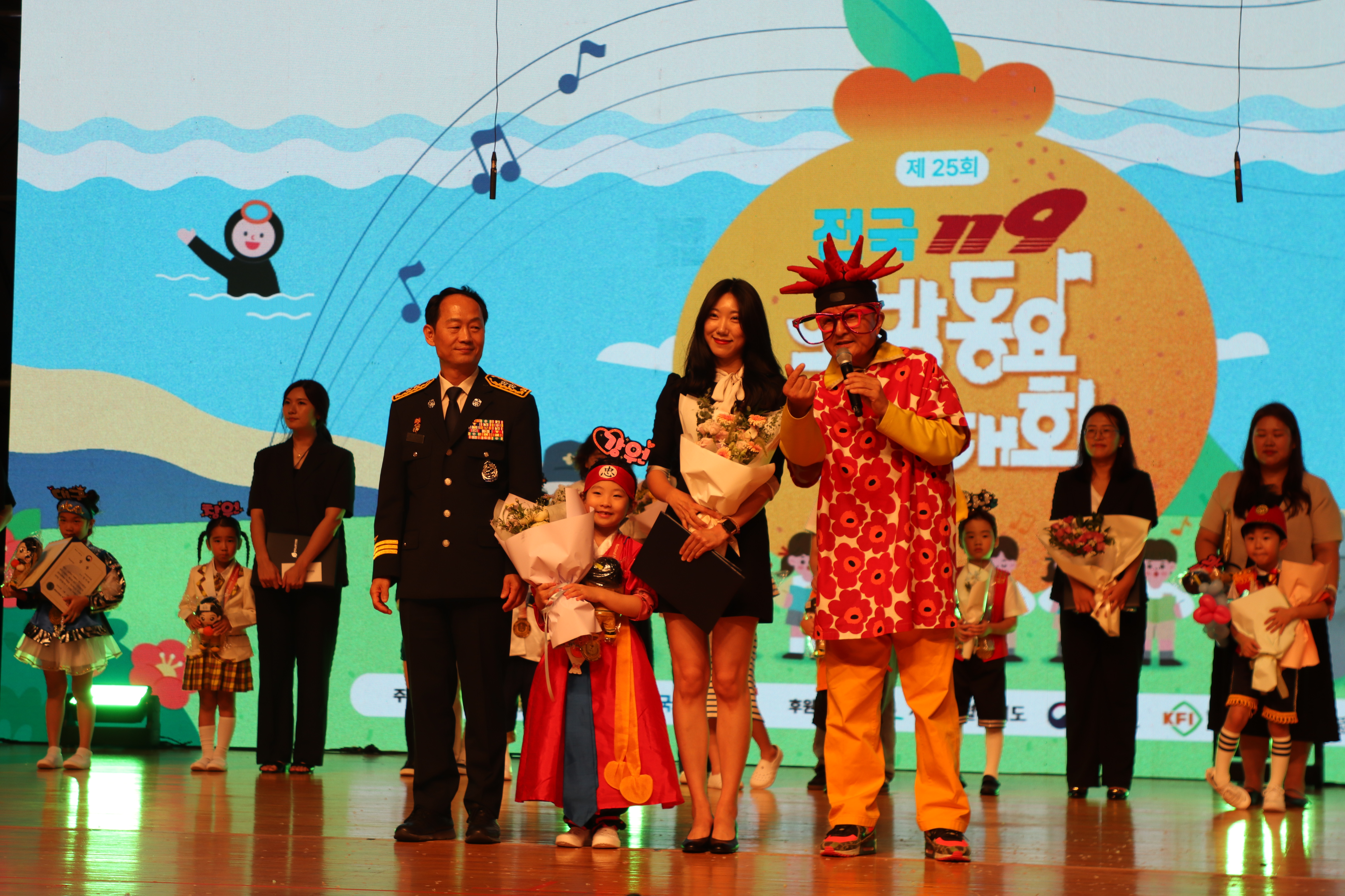제25회 전국119소방동요대회는 소방 안전에 대한 인식을 높이고 어린이들의 창의성을 촉진하기 위해 제주 국제컨벤션센터에서 개최하였으며, 유치부 16개팀, 초등부 19개팀으로 총 35개팀이 참가했다.