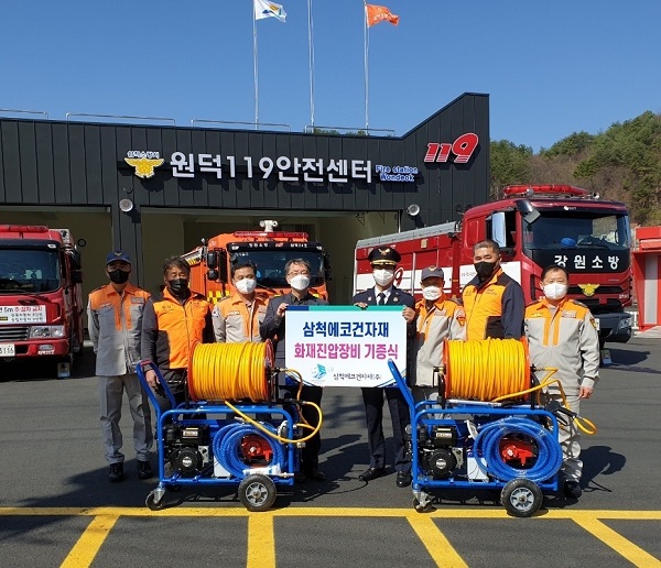 | 747 | (주)에코건자재, 삼척소방서원덕남성의용소방대에 산림화재진화용 고압펌프 기증 | 삼척홍보 | 2022-04-11 | 1170 | |