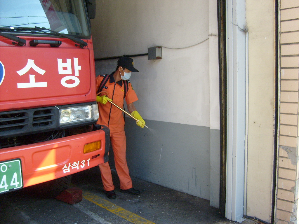 도계안전센터 및 하장.신기 지역대에서는 신종 인플루엔자 감염방지의 일환으로 도계보건소 협조를 받아 청사내 및 차고 주변일대를 방역을 실시하였으며 매주 금요일은 자체 방역날로 지정하고 청사 청결유지에 모든 직원이 최선을 다하고자 한다.