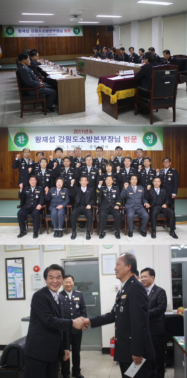 왕재섭 강원도 소방본부장은 20일 오후 5시 삼척소방서를 초도순시차 방문해 겨울철 화재예방과 구제역 방역 지원에 총력을 다하는 직원 및 의용소방대원들의 노고를 격려했다.