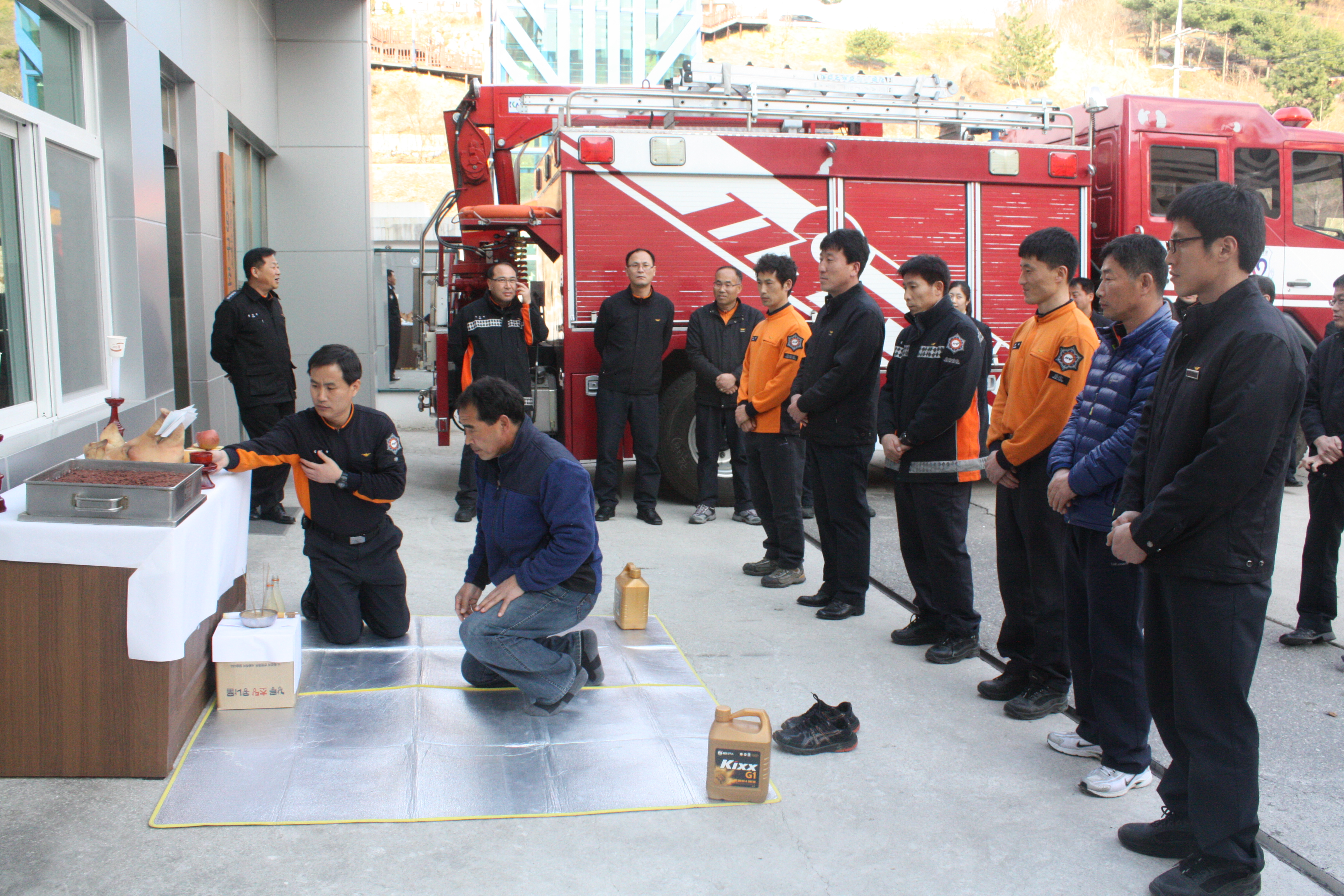 앞으로의 무사고를 위하여 안전 기원제를 지냈습니다.