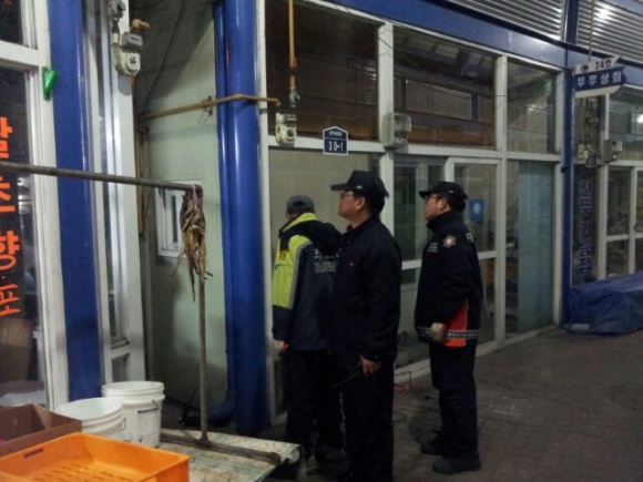 지난 12월 11일(화) 저녁 7시경 삼척시 도계읍 소재 전두시장에서 의용소방대원 10여명과 함께 전열기구, 이동식 석유난로 등 안전관리 지도와 소화전, 비상소화장치 등 소방시설 관리 지도를 하는 등 겨울철 화재에 취약한 재래시장을 대상으로 철시 점검 및 지도를 시행하여 화재예방과 시민들의 안전의식을 제고하였다..