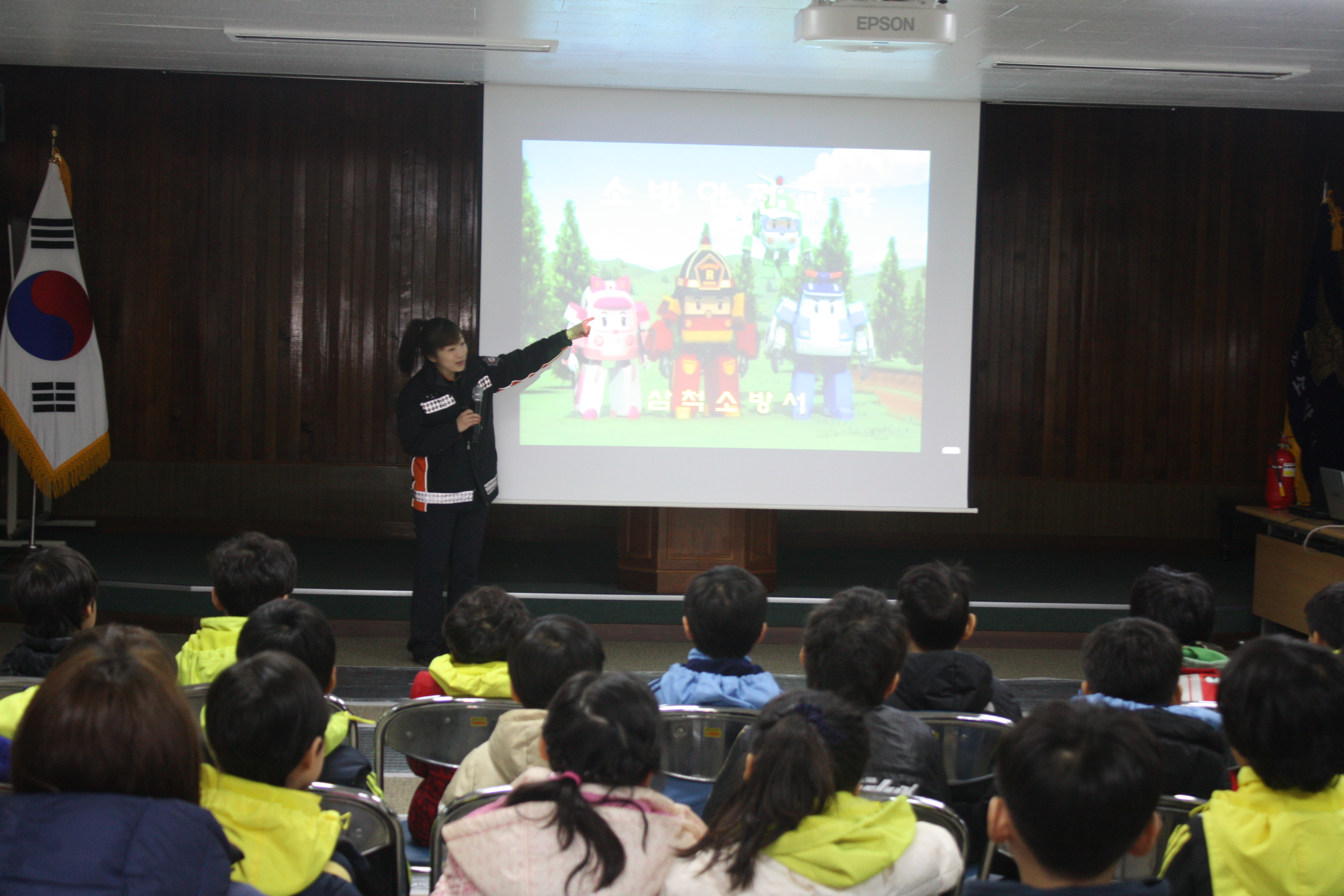 ▲ 삼척소방서(서장 이지만)는 2013년 2월 16일 10시부터 14시까지 학생 40(7~8세) 및 교사 7명을 대상으로 화재예방교육 및 심폐소생술 실습을 중심으로 주말 119아카데미를 실시하였다.