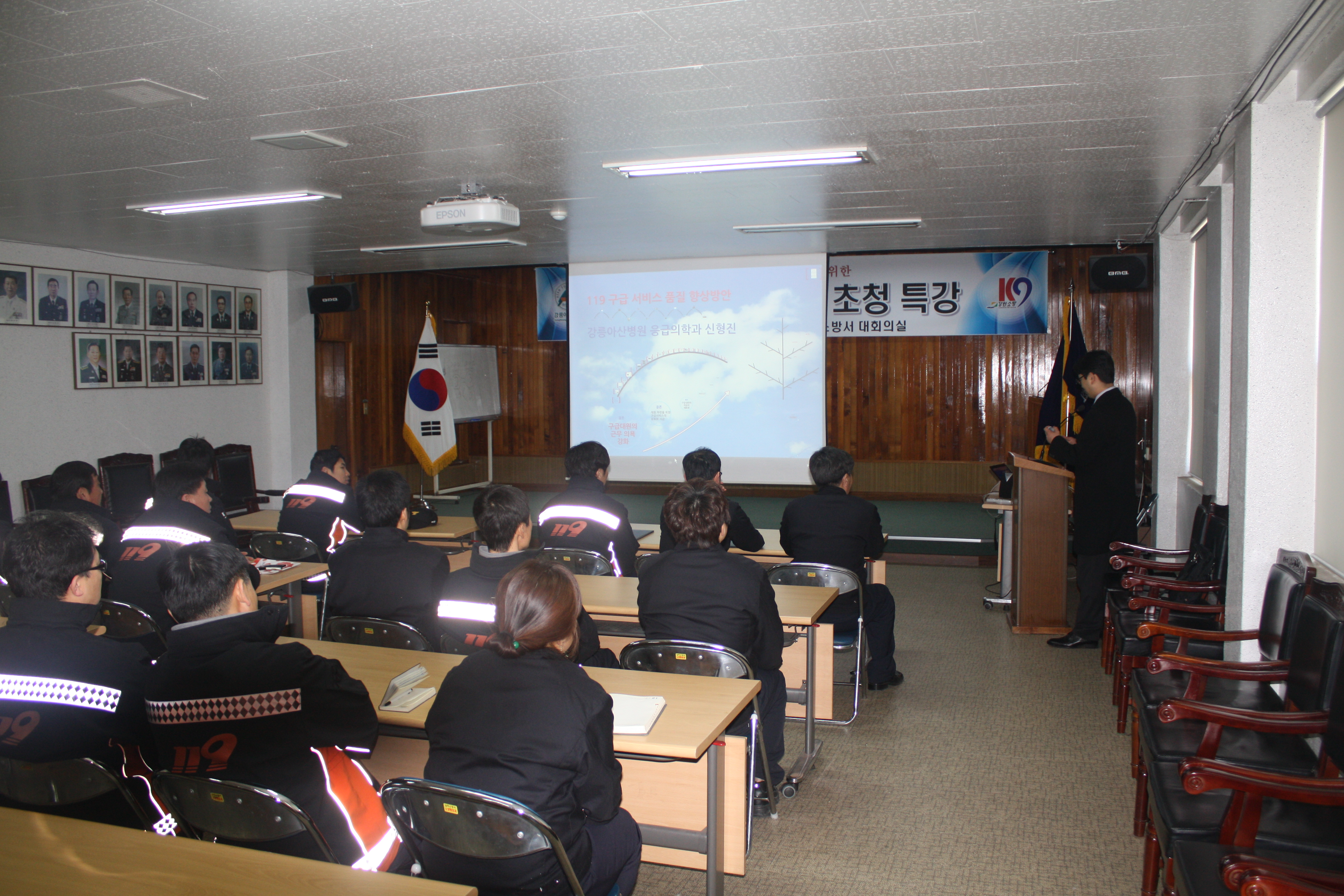 이번 교육은 구급현장에서 각종 응급상황 발생시 신속하게 대처하고 질 높은 구급서비스를 제공하고자 실시됐으며, 삼척소방서 지도의사로 위촉된 강릉아산병원 신형진 지도의를 초빙하여 119구급서비스 표준지침에 대한 종합적인 교육을 실시했다.
