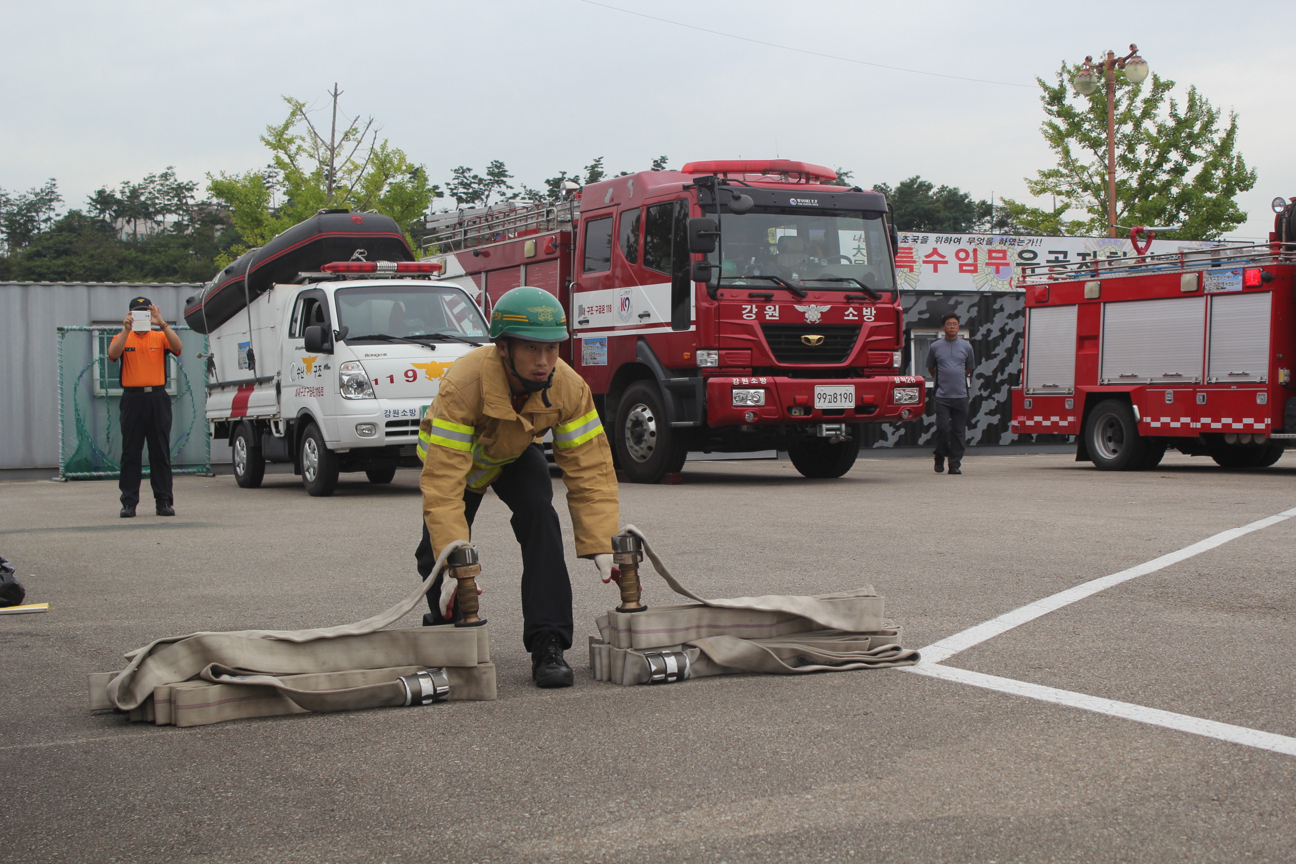 이번 대회에 『최강 소방관 경기』『화재진압 조법훈련』『속도방수』『심폐소생술 및 기관 삽관술』등 4개 경연종목에 총 14명의 선수들이 참가하게 된다.