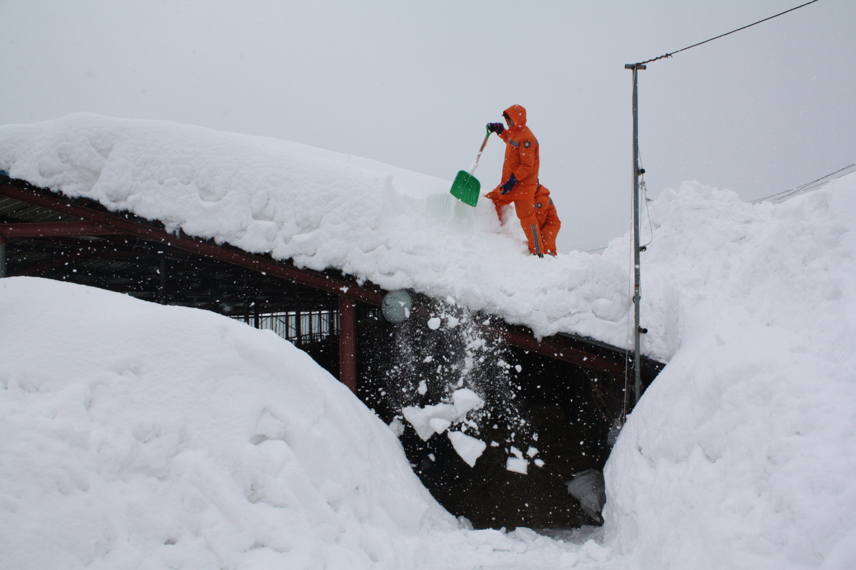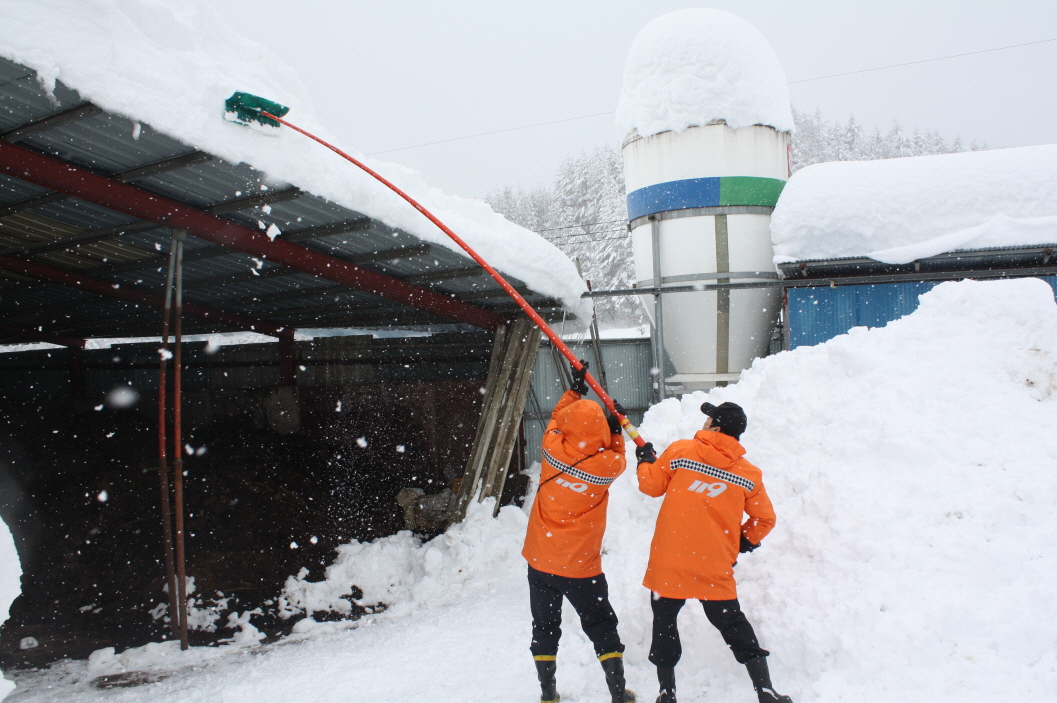 삼척소방서 및 삼척시, 삼척 한전에서는 전기 등 안전 조치를 실시한 후 축사 지붕 붕괴 위험을 방지하기 위해 제설작업을 실시하였다.
