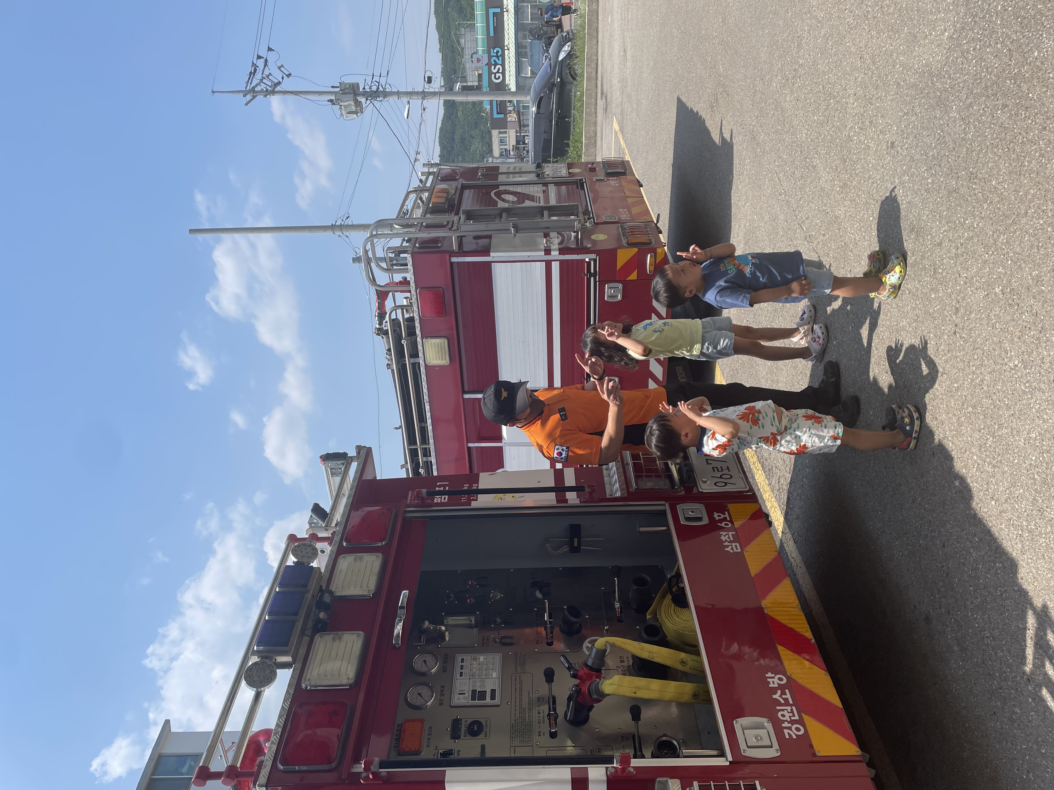 6월6일 아이들이랑 삼척을 놀러가서 우연히 소방서를 발견했어요. 한창 소방차, 경찰차를 좋아하는 아이들이라 구경만 하고 돌아가려고 했는데 저희를 발견한 소방관3분께서 아이들에게 소방차구경도 시켜주고 잠깐 시승도 하게 해주셔서 너무 감사했습니다! 돈주고도 할 수 없는 갚진 경험이라 늦었지만 감사 인사 드립니다 ! 언제나 건강하시고 행복하시길 바랄게요