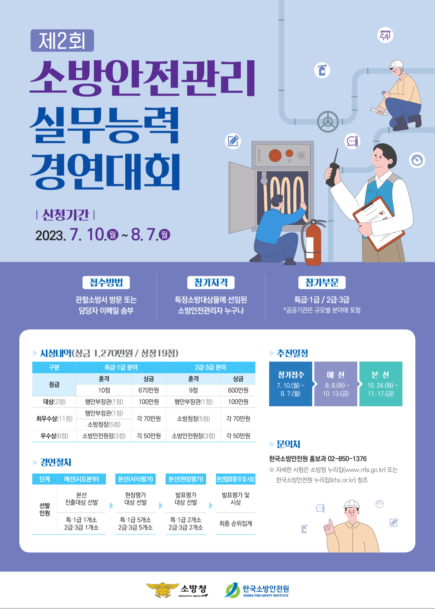 4. 경연일정: 접수(8.1. ~ 8.7.) → 강원소방본부 예선(8.8. ~ 10.13.) → 소방청 본선(10.24. ~ 11.17.)